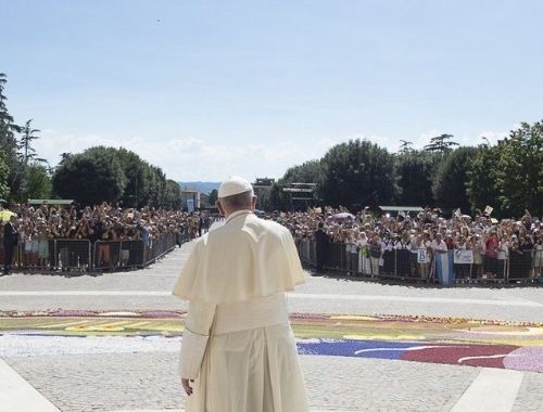 A continuación, el Santo Padre invitó a los dos jóvenes a dirigir un saludo a la plaza, en el que uno de los chicos declaró que «creer en Jesús es hermoso».